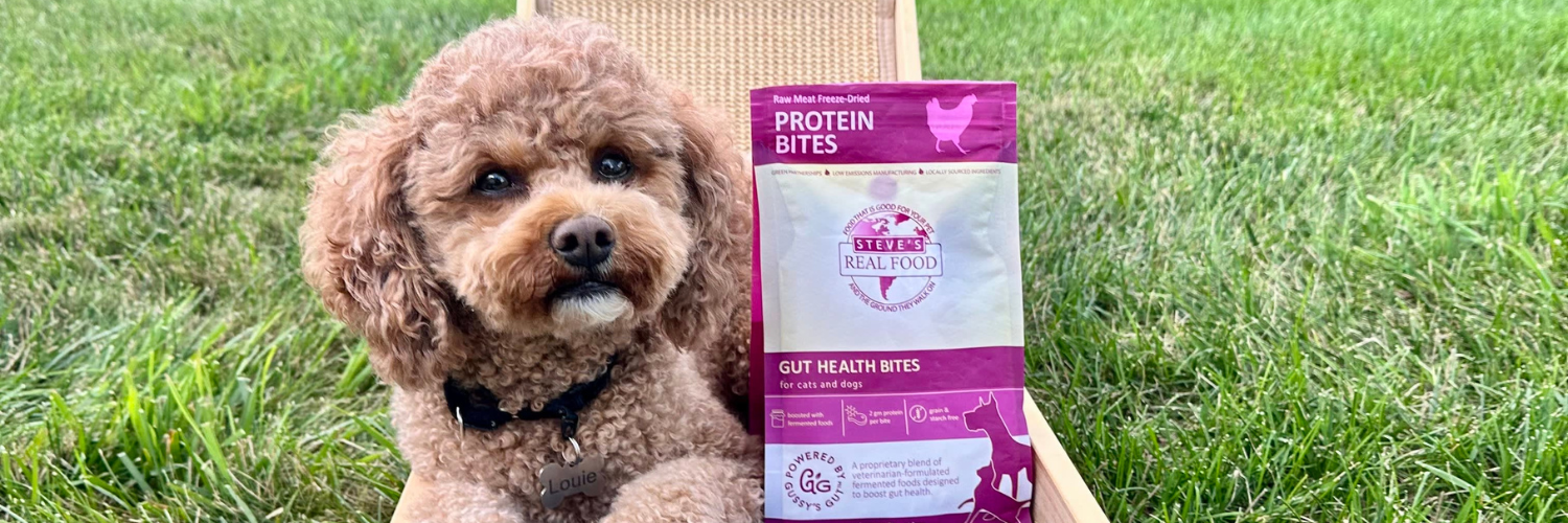 Steve’s Real Food Protein Bites are healthy treats for dogs and cats. These fermented bite-sized treats are powered by Gussy’s Gut organic fermented superfood blend. Crafted to enhance gut health in dogs and cats, our Protein Bites are available in convenient 4 oz bags, offering a delectable choice between lamb and chicken flavors. Protein Bites are a freeze-dried treat for dogs and cats. This product is powered by Gussy’s Gut organic fermented superfood blend.
