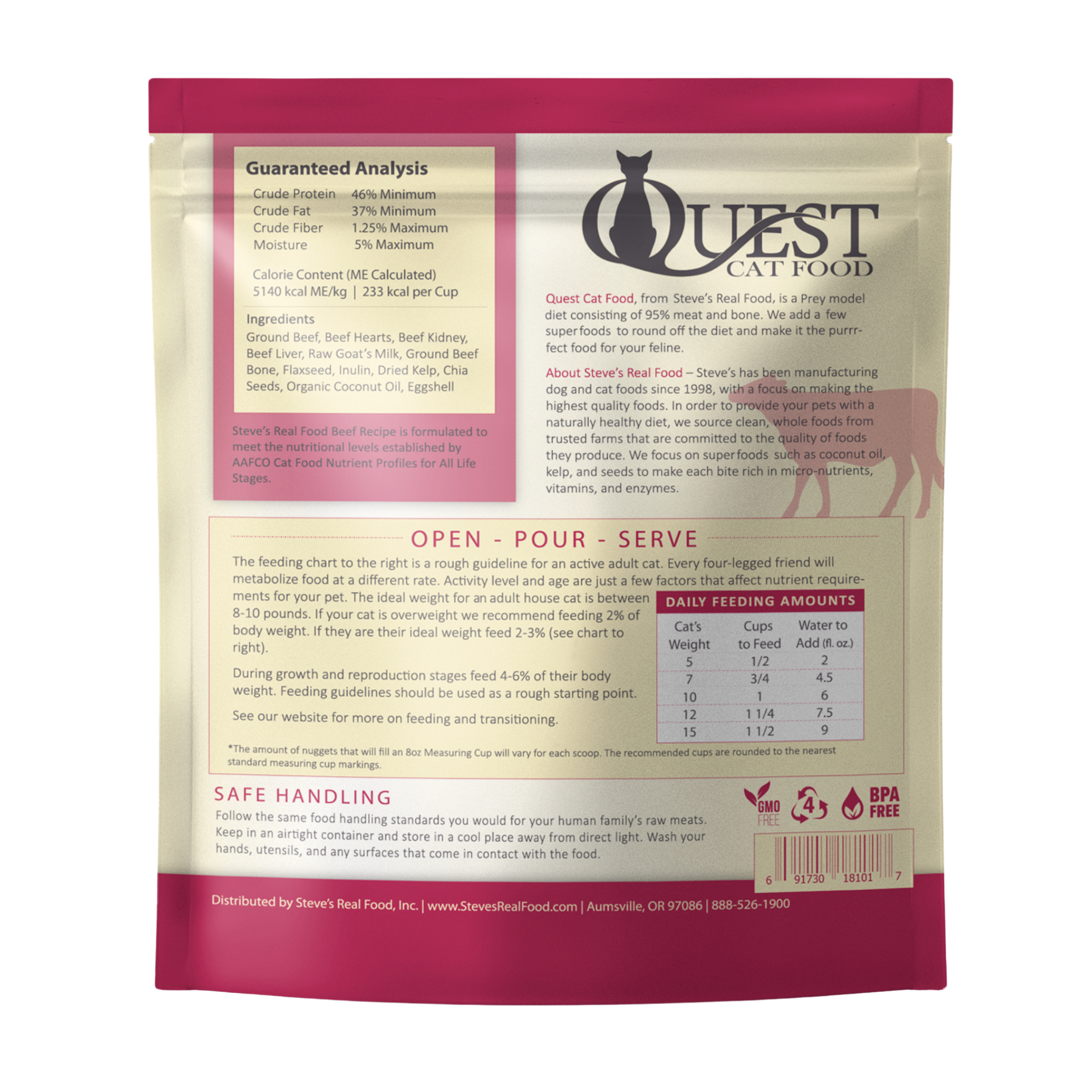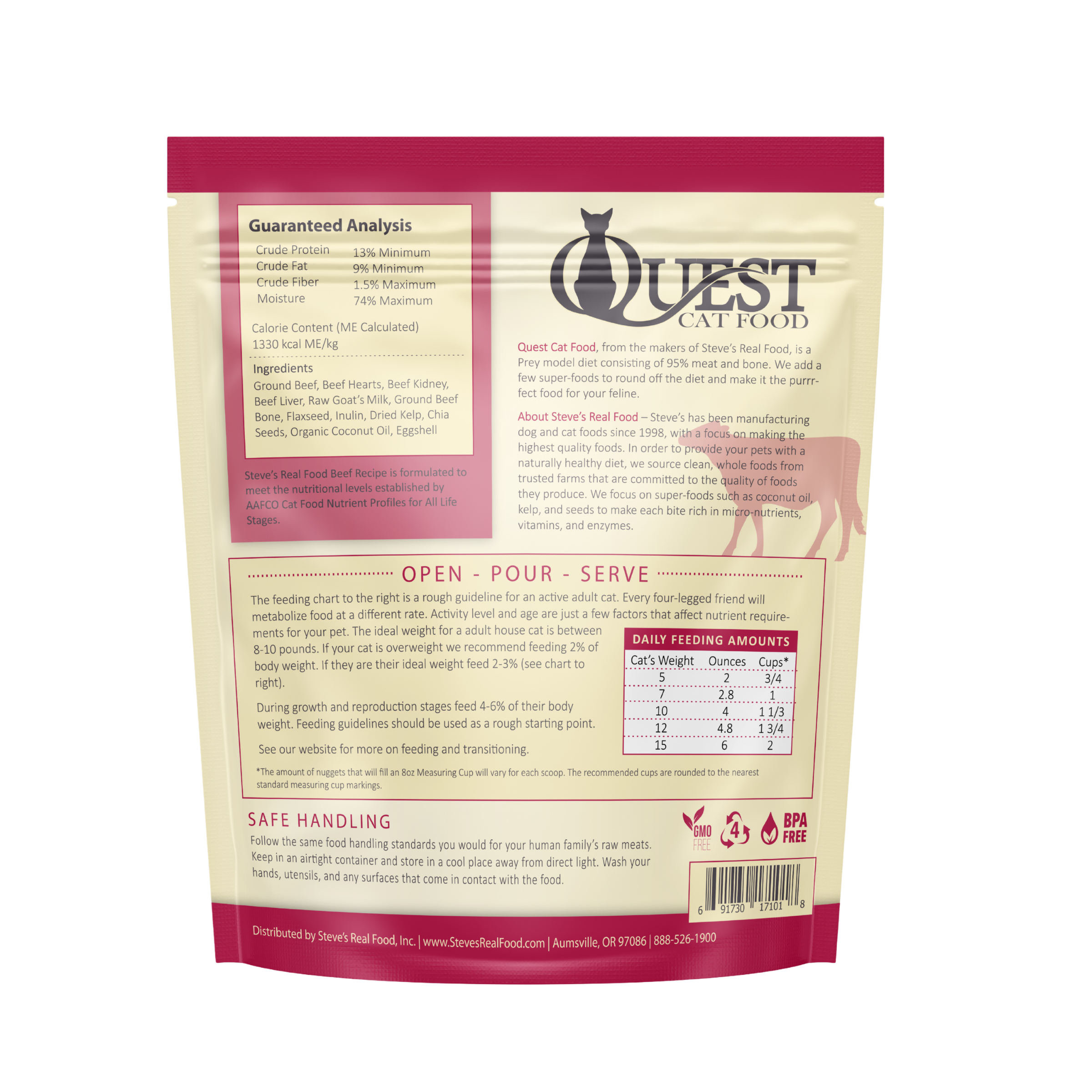 beef frozen quest cat food back